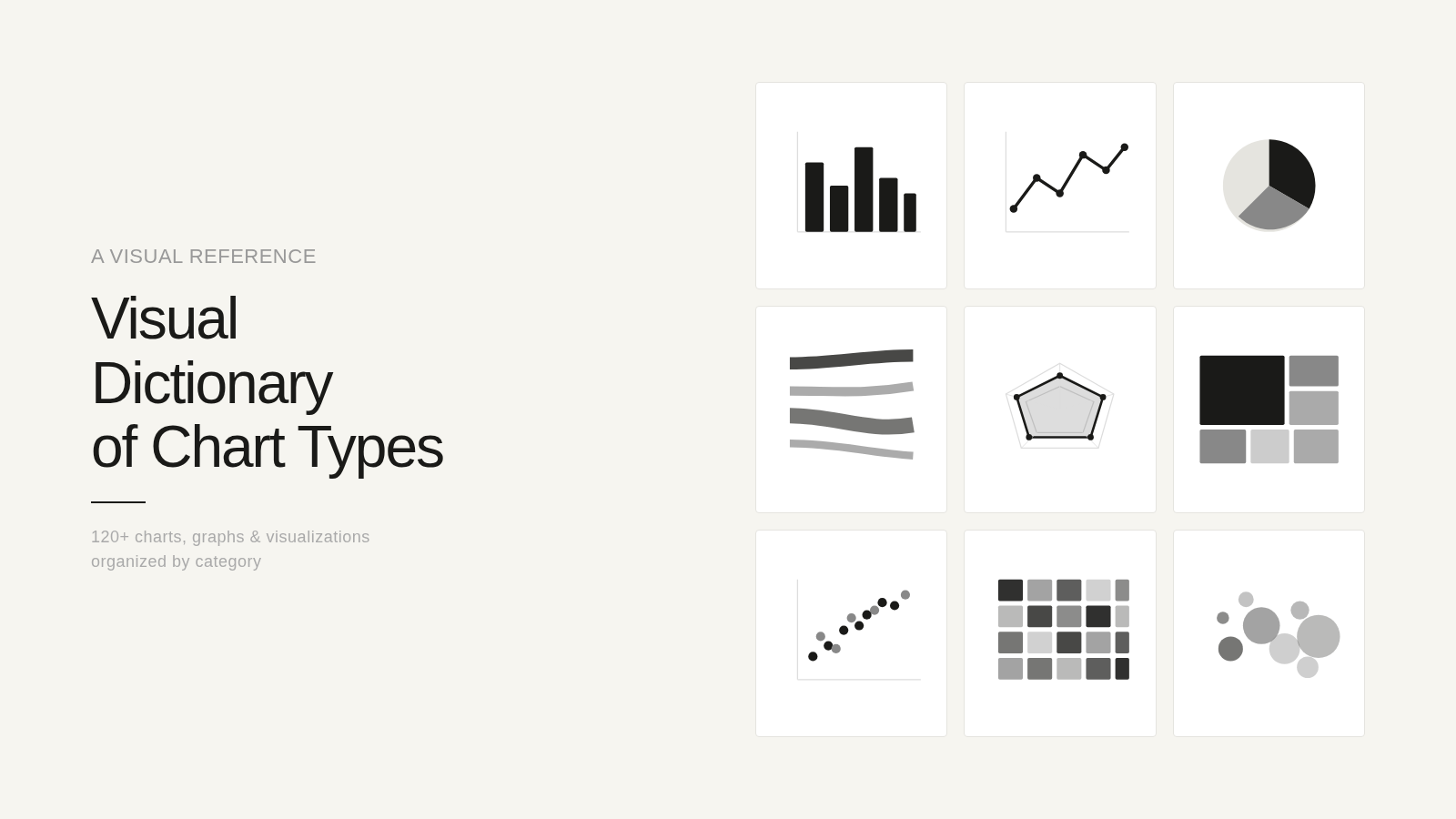 The list was comprehensive but wasn't clear. That's when I opened Claude Code. I realized both Claude and I needed a visual taxonomy, so at 10:15 at night, just before I closed my laptop, I asked Claude to build a visual dictionary of all our chart types. What it did — overnight — was convert the multi-page doc into this visual.